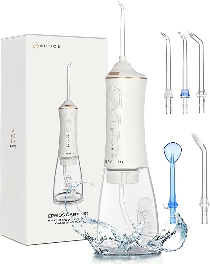 Large Capacity (300 ml) Tank & IPX7 Waterproof: Epeios OKare! Jet Water Flosser (New Gen) has a large capacity so you don't need to add water frequently. In addition, it is IPX7 waterproof, so you can use it safely in places with high humidity, such as bathrooms and bathrooms. The water tank is also removable, so you can wash it after use, and it is easy to clean. In addition, it is equipped with a 2,500 mAh lithium-ion battery that can be used for up to 60 days on a single charge. (*Use 1 time per day, level 1 (weak) 2 minutes)